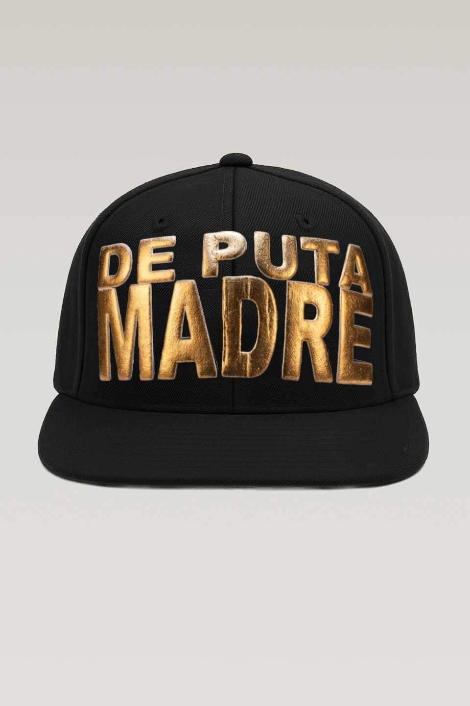 Bold black and tan cap with "De Puta Madre 69" graphic embroidery, exuding urban luxury style.Bold grey and black snapback hat with "De Puta Madre 69" logo.